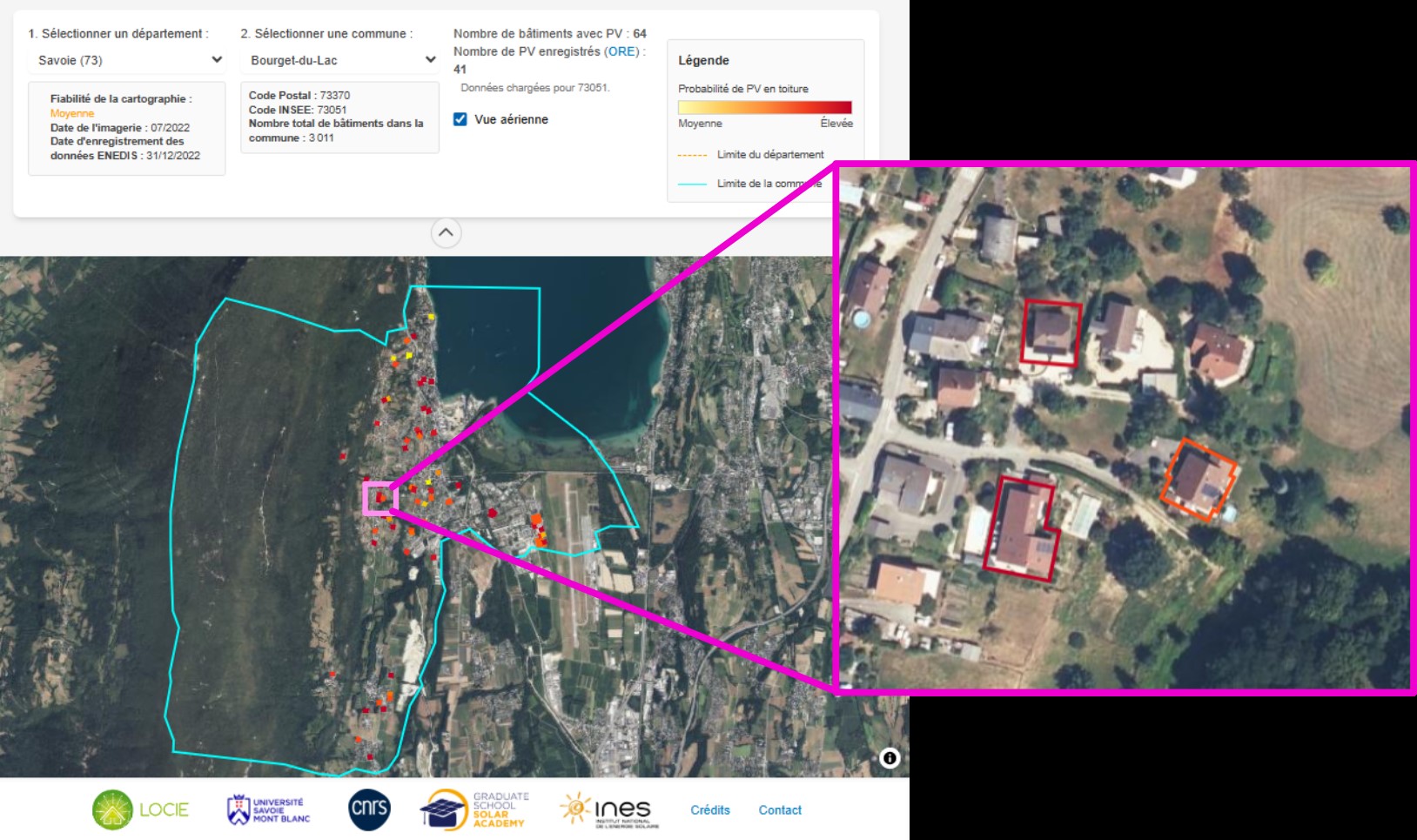 La multiplication des panneaux photovoltaïques installés sur la toiture des bâtiments contribue à la transition vers les énergies renouvelables. Mais si l'on souhaite élaborer des stratégies de déploiement, il est nécessaire de disposer d'informations précises sur leur répartition géographique actuelle. C'est l'objectif de l'outil de recensement des systèmes photovoltaïques de toiture mis au point au Laboratoire procédés énergie bâtiment (LOCIE, Université Savoie-Mont-Blanc, CNRS). Basé sur un réseau de neurones, il est capable d'identifier la présence de panneaux photovoltaïques sur une toiture à partir de photos aériennes de l'IGN et des données du cadastre.
